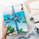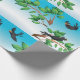 Trois beaux oiseaux volant autour d'un arbre. Cette conception semble vraiment efficace sur ce papier d'enveloppement