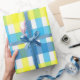 Cadeau Papier à envelopper brillant bleu jaune Plaid