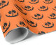 Ce papier d'emballage est présenté dans un papier couleur orange avec un design d'impression faciale citrouille d'Halloween festif. Customisez cet objet ou achetez tel quel. Image stock