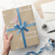 Papier brun clair avec papier motif blanc. J'ai plusieurs designs de cette enveloppement cadeau simple et magnifique dans mon magasin. Celui-ci est le mot blanc art Joyeux Noël. Dites-le simplement.