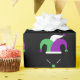 Enveloppez vos cadeaux Mardi Gras dans le style avec ce papier d'emballage festif! Doté d'un motif animé de casquettes de jester colorés dans le classique Mardi Gras violet, vert et jaune sur un arrière - plan noir frappant, ce papier d'emballage ajoute une touche parfaite de flair de carnaval à toute célébration. Il est sûr de faire de vos cadeaux la vie de la fête!