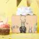 Laissez le lapin Dapper et son ami aider à envelopper vos cadeaux de printemps et de Pâques avec un arrière - plan de pêche et un motif miroir.