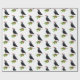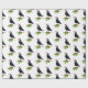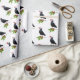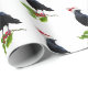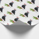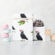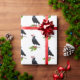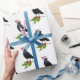 Une corneille juteuse portant un chapeau de Père Noël tient une spring de saint sur ce papier d'emballage de vacances.