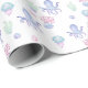 Fête d'anniversaire à thème nautique Papier à envelopper avec des illustrations du fond marin, pieuvre mignonne, adorable méduse et une queue magique de sirène.
