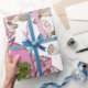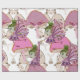 papier d'emballage, fées de champignons roses design, emballage cadeau, prune, rose