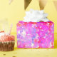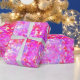 Papier d'emballage à points roses et violets pour cadeaux de fête