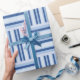 Papier d'emballage Blue Stripes pour toutes les occasions. Et n'oubliez pas que vous pouvez customiser votre taille et la texture du papier d'emballage.