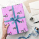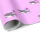 Envelopper le papier avec un joli requin d'anniversaire avec des ballons de fête de fleurs roses aux couleurs rose, violet et turquoise. Le design est personnalisable.