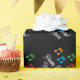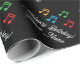 Papier d'emballage d'anniversaire joyeux avec notes de musique. Enveloppe cadeau personnalisée avec texte personnalisé Joyeux Anniversaire. Un design modèle pour les hommes, les femmes et les enfants (garçons et filles) qui aiment la musique, faire de la musique ou jouer des instruments de musique. Couleur arrière - plan noir personnalisable. Papier d'emballage élégant pour professeur de musique, pianiste, chanteur, artiste, artiste, chanteur, pianiste, enfants, étudiant, etc. Idéal aussi pour les vacances de Noël.