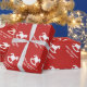 Papier d'emballage de basculage de l'enfant de Noël rouge de cheval. Enveloppe de cadeau mignonne pour de petits enfants. Ajoutez votre propres nom et saisons personnalisés saluant comme le Joyeux Noël ou bonnes fêtes. Approprié au garçon ou à la fille. L'emballage à la mode roule avec la finition brillante ou mate.