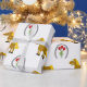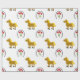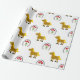 Papier d'emballage de jour de Kentucky Derby illustré avec des chevaux, des fers à cheval et des roses rouges sur le blanc.