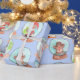 Papier d'emballage bleu Noël enneigé de Noël Papier d'emballage parfait pour les vacances à envelopper vos cadeaux dans. Montre différentes boules de neige telles que père Noël et Christmas Tree