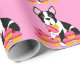 Lunatique et amusement Boston Terrier avec le papier d'emballage de petits gâteaux