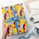 Un design fantaisiste de style rétro avec des souvenirs de vacances espagnoles, une guitare en fer forgé, un ventilateur en dentelle et une rose rouge. Un design personnalisable en noir, blanc, rouge et jaune doré pour que vous personnalisiez avec vos propres textes, images et idées. Une image art numérique originale.
