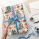 Un joyeux motif d'arbres de Noël et d'éléments floraux apporte un esprit festif au papier d'emballage, parfait pour les cadeaux pendant la période des fêtes. Des couleurs vives rehaussent la gaieté saisonnière.