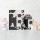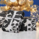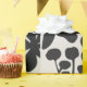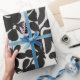 papier d'emballage spectaculaire avec un design floral noir et blanc. collage de fleurs noires sur un sol blanc.