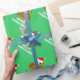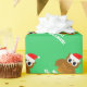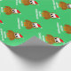 Papier d'emballage de dessin de chouette de Noël. Texte personnalisé pour les saisons Salutation de vacances. Un poster de animal drôle portant un casquette du Père Noël. Couleurs xmas vert et rouge.