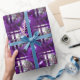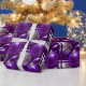 Papier d'emballage élégant avec une collection de baubles de Noël mauve et argent brillants. Un design personnalisable pour personnaliser avec votre propre texte, images et idées. Image créée à l'aide d'une photographie originale et de techniques numériques.