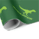 Papier d'emballage dinosaure vert mignon personnalisé avec nom enfant. Jolie préhistorique t rex cadeau envelopper design pour petits garçons 1er anniversaire fête, baby shower, noël etc. Faites un pour fils, petit-fils, nouveau bébé, petit-enfant, nouvelle mère, mère à être, nouveau-né enfant etc. Wild préhistorique t-rex dessin animé animal pour enfants. Drôle Tyrannosaurus rex.