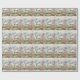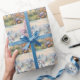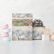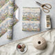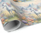 Papier enveloppant montrant une image rêveuse d'une licorne blanche avec une crinière arc-en-ciel debout dans un champ de fleurs. Dans l'arrière - plan se trouvent des montagnes majestueuses. Le cadeau parfait pour donner à ceux qui aiment les licornes magiques et mystiques. Contient du contenu génératif.