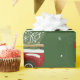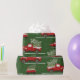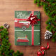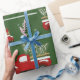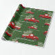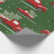 Papier d'emballage de camion de Noël avec des voitures rouges vintage sur arrière - plan vert naturel avec des flocons de neige. Ajoutez votre propre texte avec l'outil Zazzle facile à utiliser ! Visitez le magasin pour voir toute la collection.