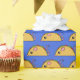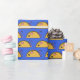 Ce mignon motif de rat taco déborde de fromage, de laitue et de tomate sur un arrière - plan bleu.