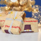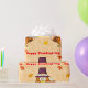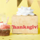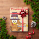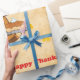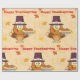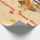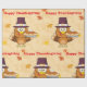 Un oiseau dans un casquette tenant une tarte d'action de grâce. Cette conception semble vraiment efficace sur ces papiers d'enveloppement