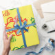 Le papier d'emballage branché Jingle Bells avec une pointe de jaune est une option fantastique quand il devient disponible à l'achat.