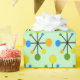 Ce papier d'emballage est recouvert d'un design moderne du milieu du siècle de starbursts atomiques rétro sur un arrière - plan vert.