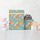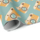 Ce papier d'emballage est parfait pour les photographes et les vieux persiennes de l'école avec son tout motif d'un appareil photo de style rétro en or, brun et crème contre un arrière - plan bleu aqua clair. .