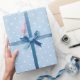 Ce papier d'emballage est conçu dans des couleurs bleu clair et blanc avec de petits pois.
