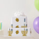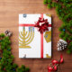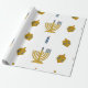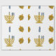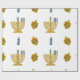 Ce papier d'emballage de Chanoukah présente des articles de Chanoukah dessinés à la main, dont une Chanukiah Menorah (Chanukiah), Dreidel, et des bougies.
