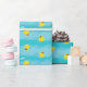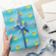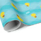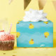 Papier d'emballage cadeau bleu avec canards et "Joyeux anniversaire!". Personnalisable .