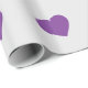 Ce papier d'emballage présente un motif extensible de coeurs violets sur un arrière - plan blanc.