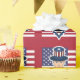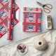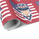 Papier enveloppant avec une illustration de l'oncle Sam avec le drapeau américain comme arrière - plan, 4 juillet dessin patriotique de Maxi Harmony / Radka Kavalcova ; version rouge