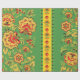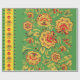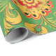 Papier d'emballage russe Hohloma, art russe, fraises rouges, feuilles jaunes, arrière - plan noir