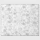 Papier d'emballage de flocons d'argent avec de grands flocons d'argent brillants sur un arrière - plan blanc en marbre de Carrera.