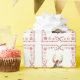 Un cerf portant un casquette Père Noël rouge et blanc et des étoiles sur ses bois. Entouré de bonbons de menthe rouge et blanche, ce papier d'emballage festif serait parfait pour un cadeau de Noël spécial.