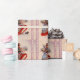 Papier d'emballage de Noël vintage montrant un jeune couple victorien et leur petit chien rentrant à la maison dans la neige des magasins de Noël.