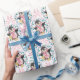 Sur ce joli papier d'emballage Holiday, un adorable petit manchot porte un foulard rayé rose et blanc et s'assoit sur un traîneau. Le pingouin est entouré d'une feuille bleue et d'une couronne de baies rouges. Les tourbillons roses ajoutent un intérêt supplémentaire. Votre texte personnalisé est en bleu et en rose. C'est un papier d'emballage merveilleux pour une petite-fille ou une petite fille.