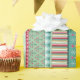 Un joyeux enveloppement cadeau avec un motif rayé de Noël plein d'étoiles, de flore hivernale et de coeurs. Oeuvre originale de Marketa Stengl.