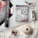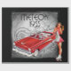 Papier d'emballage cadeau avec image de voiture vintage et un carhop avec les mots "Meteor 1955".