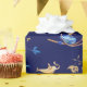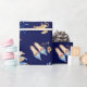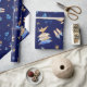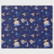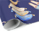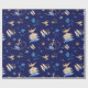 Des nuits arabes enveloppant du papier avec des illustrations bleues et dorées de lampes, coussins, chaussures, hookahs et fleurs sur un arrière - plan bleu royal. Vous pouvez modifier la couleur de l'arrière - plan.