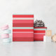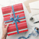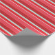 Ce papier d'emballage a des vibes rétro, avec un motif rayé de Noël. Les rayures sont roses, pourpres, bleues et roses.