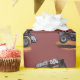 Ce papier d'emballage présente une reproduction d'une photo d'une voiture de course au sprint.