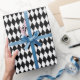 Papier d'enveloppement avec imprimé motif en diamant à arlequin noir et blanc. Customisez cet objet ou achetez tel quel.