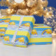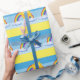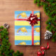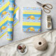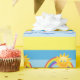 Une jolie photo d'un soleil souriant avec un arc-en-ciel et des nuages dans le ciel est présentée sur ce papier d'emballage cadeau. Un design coloré sur un arrière - plan jaune pâle rend cette façon joyeuse de donner ce cadeau spécial!