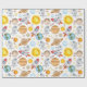 Papier d'emballage à thème spatial avec planètes, astronautes et autres éléments spatiaux.