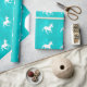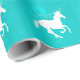 Envelopper les cadeaux pour la mariée et le marié avec un rouleau de papier Mariage Unicorne Turquoise. Le papier à envelopper est orné d'un arrière - plan étoilé avec une licorne ornée d'étoiles. Papeterie mariage supplémentaire et cadeaux disponibles avec ce design aussi.