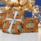 Le motif à thème Halloween présente l'aquarelle d'un citrouille peint en noir avec des pois orange sur l'arrière - plan orange d'automne.